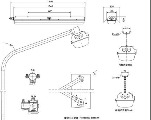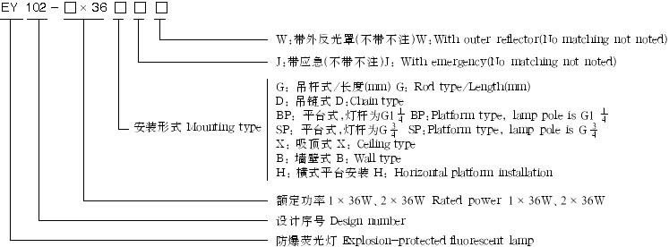 | 1、防爆标志:ExnAIIT6/DIP A20TA、T6; 2、 防护等级: IP66; 3、 电源: 1P+N+PE, 50~60Hz; 4、额定工作电压: AC187V~AC242V; 5、额定功率:1×36W、2×36W; 6、功率因素:≥0.95; 7、 应急时间:≥90min; 8、 应急转换时间:≤0.5s。 |