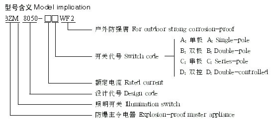 2、内装控制开关为隔爆元件,为二极BK系列控制开关。