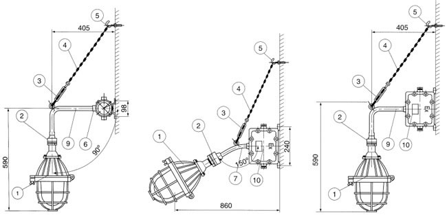 | 壁式安装90°(b2) 壁式安装30°(b1) 壁式安装90°(b2) |