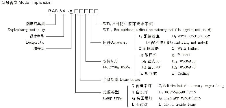 3、可配装白炽灯、汞灯、金卤灯。