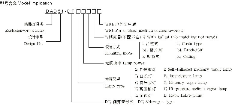 3、可配装白炽灯、汞灯、高压钠灯、金卤灯。