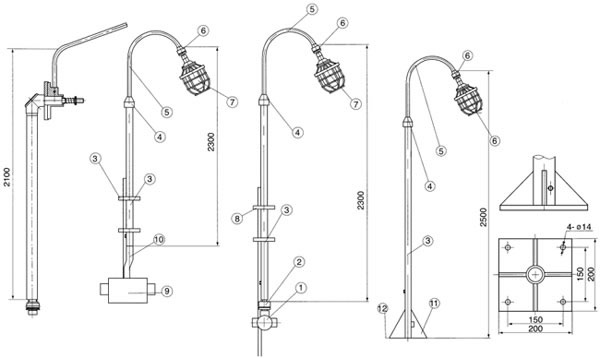 3、01、02、05、06型可根据用户要求配装灯伞。