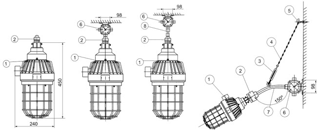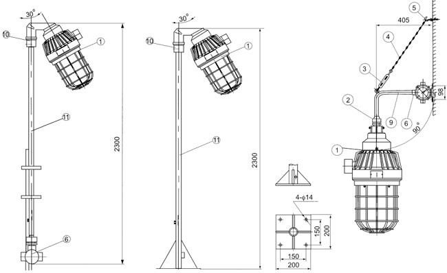 | 吸顶式(x) 吊杆式(g) 壁式安装30°(b1) |